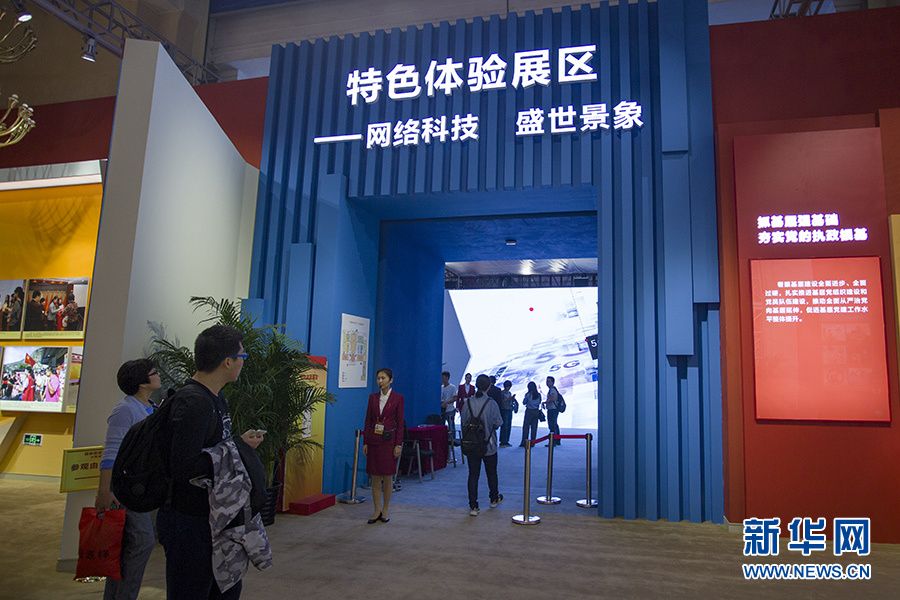 “砥礪奮進的五年”大型成就展網絡科技特色體驗展區入口。本展區由中央網信辦組織網信企業和有關機構共同籌備,設置了產業生態、智慧生活、網絡制造、展望未來等10個專題,主要通過視頻、實物,以互動體驗的方式,集中展示五年來網絡技術、產業和應用發展成就,反映互聯網給人們生產生活帶來的新變化。新華網記者李林攝