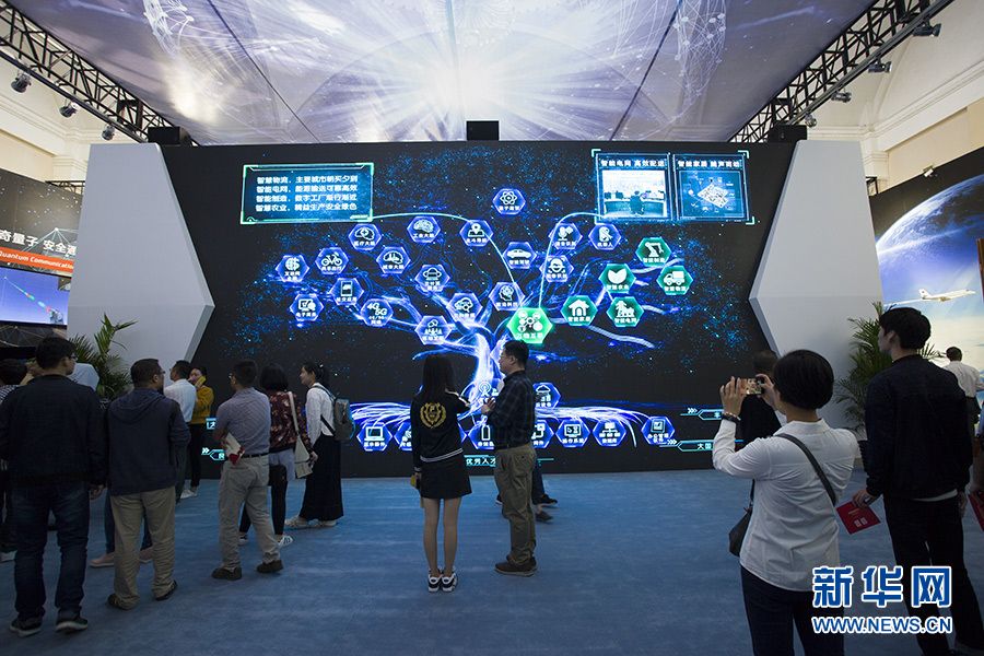 “砥礪奮進的五年”大型成就展網絡科技特色體驗展區“泛互聯網之樹”專題部分。樹的根系部分代表我國網信產業基礎,樹的主干和和枝葉代表互聯網在我國經濟社會各領域的應用。參觀者在這里可以看到,黨的十八大以來,我國網信事業蓬勃發展,核心芯片、基礎軟件、關鍵設備不斷取得突破,產業基礎日漸夯實,新應用新業態新模式不斷涌現。新華網記者李林攝