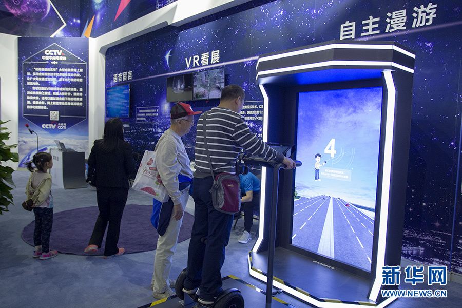 “砥礪奮進的五年”大型成就展網絡科技特色體驗展區“在線文娛”專題部分,這里是“砥礪奮進的五年”大型成就展的網上展館。在這里,參觀者可以通過虛擬現實眼鏡等虛擬現實設備觀看展覽,可以現場感受火箭升空、漫游港珠澳大橋等,還可以與展品合影,并通過語音留下觀展感受。新華網記者李林攝