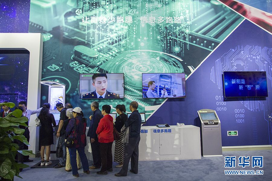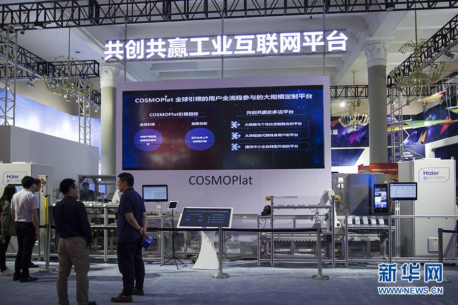 “砥礪奮進的五年”大型成就展網絡科技特色體驗展區“網絡制造”專題部分。制造業已經成為互聯網跨界融合的主戰場。參觀者在這里看到的是,海爾的大規模定制服務平臺,樹根互聯的工業互聯網平臺,酷特云藍的服裝個性化定制大規模生產平臺,聯想晨星混合現實眼鏡、阿里云ET工業大腦、沈陽機床集團的智能機床解決方案,這個展區反映了互聯網與傳統行業深度融合,實現轉型升級的情況。新華網記者李林攝