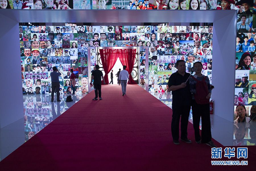 “砥礪奮進的五年”大型成就展網絡科技特色體驗展區“展望未來”專題部分,這是成就展的結尾篇。參觀者可以在這里欣賞到唯美震撼視頻,走向未來之門,穿越至未來美好生活。新華網記者李林攝