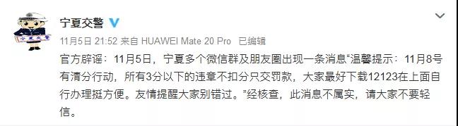 11月8日有清分行動?寧夏交警辟謠:不實信息