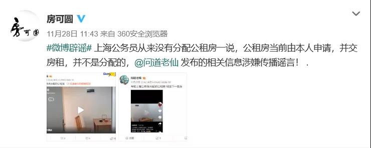 上海市住建委官方微博辟謠截圖