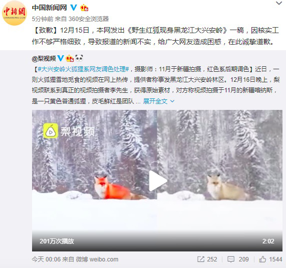 據(jù)了解,火狐貍的原版視頻攝于11月的新疆喀納斯。拍攝者李先生稱,視頻中原本是一只黃色普通狐貍,其團(tuán)隊(duì)成員后期將狐貍皮毛調(diào)色處理成鮮紅色,不知怎么就傳了出去。