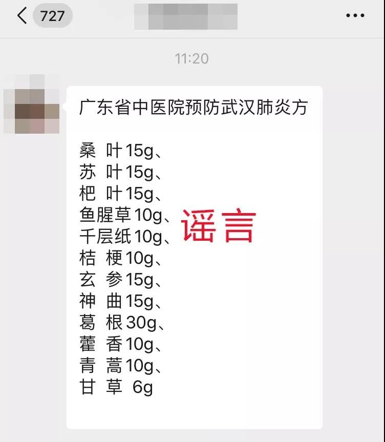 日前,微信群里流傳一份“廣東省中醫院預防武漢肺炎方”,前日(21日),廣東省中醫院在官方微信發布聲明辟謠,稱此方非廣東省中醫院制定。