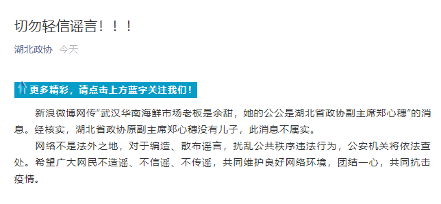 網絡不是法外之地,對于編造、散布謠言,擾亂公共秩序違法行為,公安機關將依法查處。希望廣大網民不造謠、不信謠、不傳謠,共同維護良好網絡環境,團結一心,共同抗擊疫情。