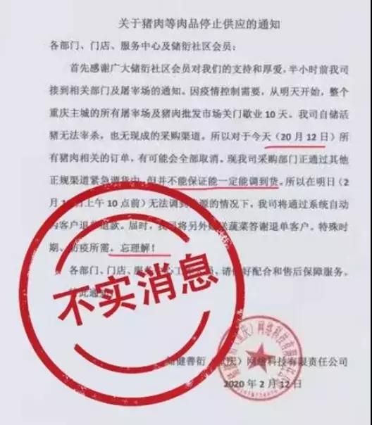 2月13日,網信重慶發布聲明稱,經向重慶市農業農村委核實,相關消息不屬實。重慶市政府未出臺包括主城區在內的屠宰企業關門歇業等相關規定。政府積極鼓勵支持包括屠宰在內的民生行業,在做好新冠肺炎防護的同時,盡快復工復業。另據市農業農村委統計,全市154家屠宰企業,已復工115家,每天屠宰上市生豬8000頭左右、從市外調入豬肉200噸左右,市場豬肉供應有保障,價格平穩。