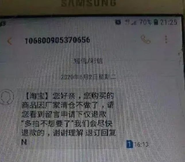 還有一些網友在直播購物后,就收到店家清倉不做了,要求顧客退款的詐騙短信。