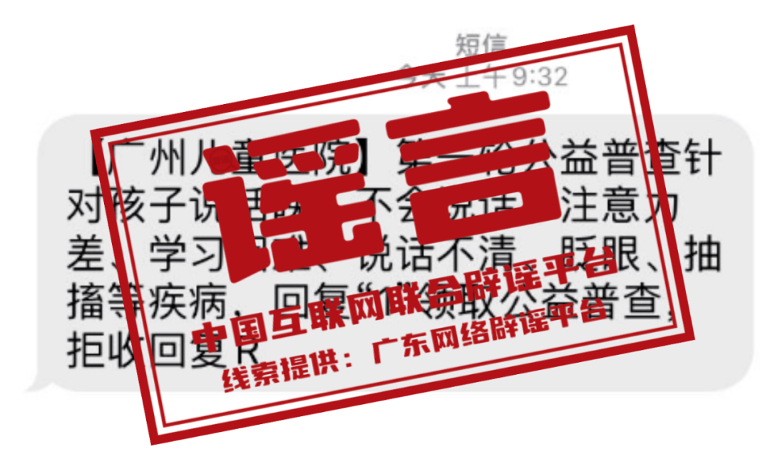 真相:近期,有社會醫(yī)療機(jī)構(gòu)冒用廣州市婦女兒童醫(yī)療中心(以下簡稱“廣州婦兒中心”)名稱,通過群發(fā)短信的方式,宣傳該中心正在進(jìn)行“身高普查”“針對孩子說話晚,不會說話、注意力差等”等公益普查項(xiàng)目。對此,廣州婦兒中心發(fā)布聲明稱,目前,該中心未就上述公益普查項(xiàng)目與其他任何醫(yī)療機(jī)構(gòu)或社會組織存在合作關(guān)系,也未曾通過短信、電話向廣大患者推送過醫(yī)療信息。特此提醒廣大市民,切勿輕信此類信息,并注意保護(hù)個(gè)人隱私。(來源:廣東省互聯(lián)網(wǎng)舉報(bào)中心)