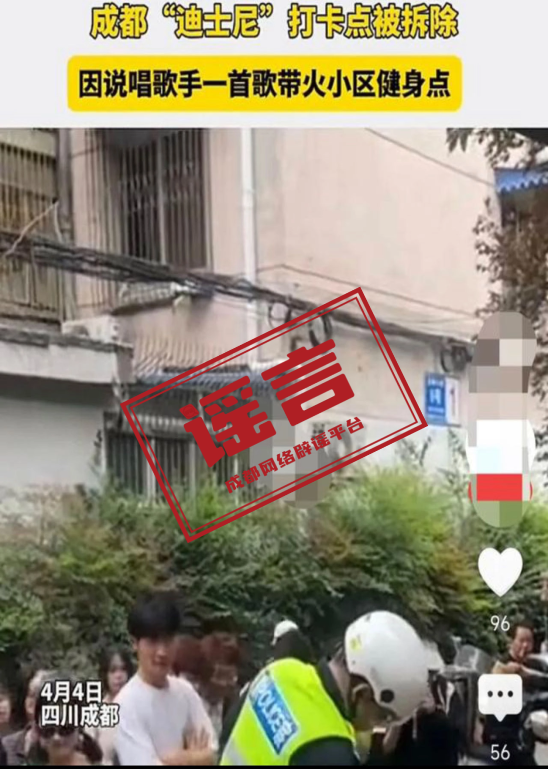 近日,由于參與打卡、直播人數眾多,造成噪音擾民等問題,隨即有網民發視頻稱,成都“迪士尼”打卡點被拆除。