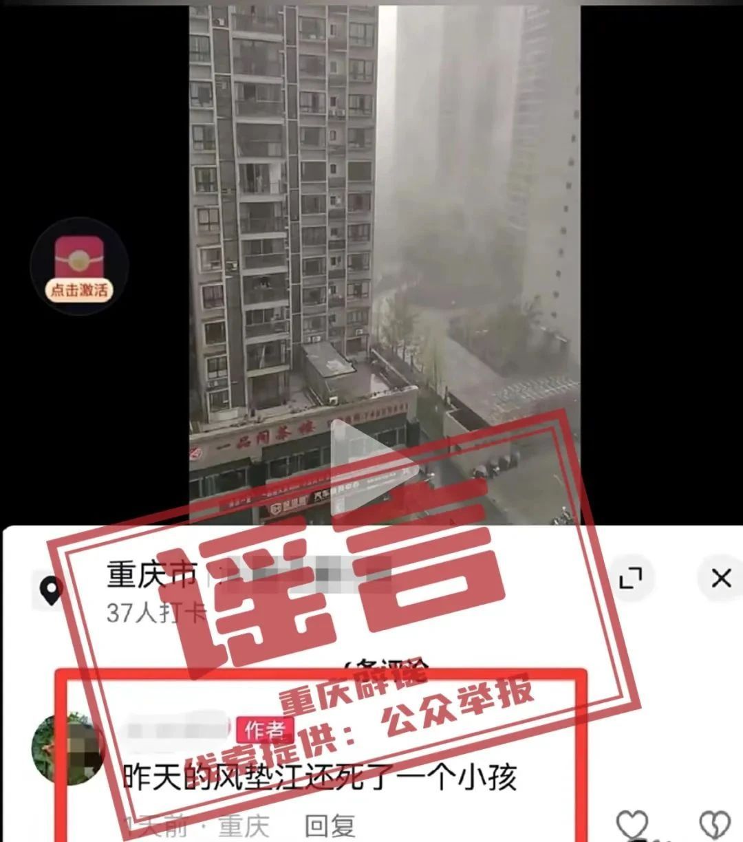 經(jīng)向警方核實(shí),9月5日,墊江突發(fā)強(qiáng)對(duì)流天氣,多個(gè)街道短時(shí)降雨量達(dá)50mm以上。陳某將拍攝的現(xiàn)場(chǎng)視頻上配上道聽途說傳言,編造“強(qiáng)對(duì)流天氣致一小孩死亡”謠言。目前,重慶墊江警方已依法對(duì)陳某予以行政處罰。