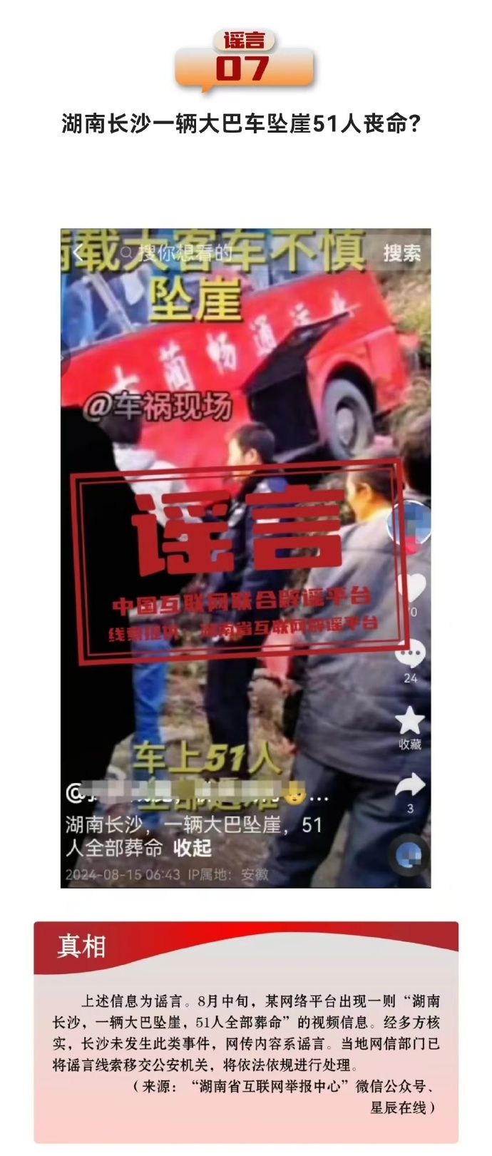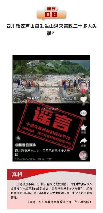打擊網絡謠言 共建清朗家園 中國互聯網聯合辟謠平臺2024年8月辟謠榜