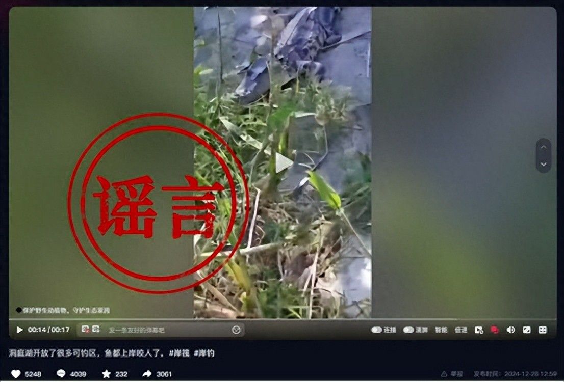 經網信、公安部門聯合查證,視頻反映事件系2024年6月發生于武漢長江段,當地已發布事件通報。視頻發布者胡某某為吸引眼球、博取流量,擅自標注“洞庭湖可釣區”,引發網民誤解,造成不良社會影響。