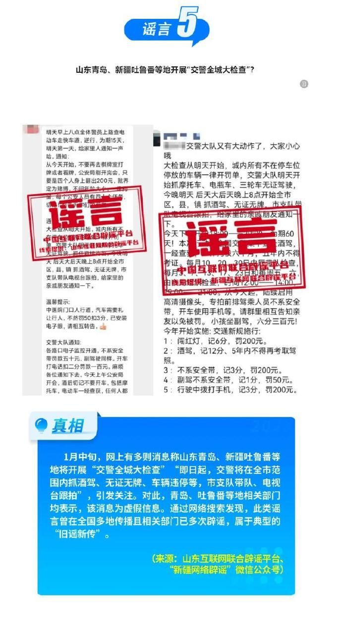 打擊網絡謠言 共建清朗家園 中國互聯網聯合辟謠平臺2025年1月辟謠榜