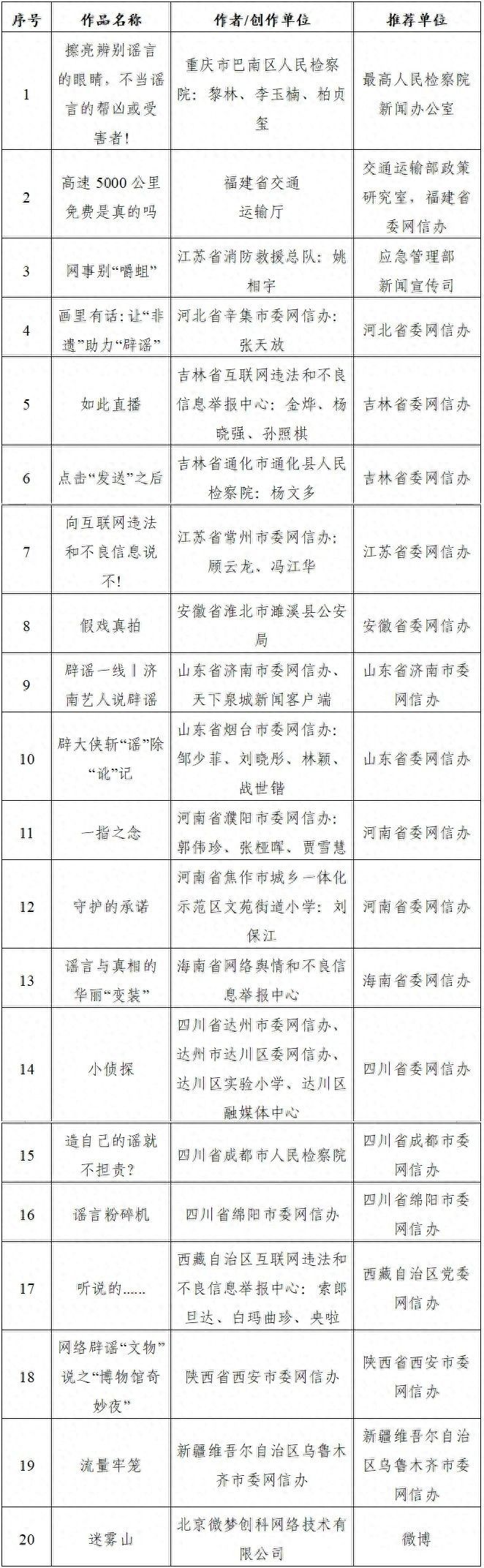 附:“第七屆互聯(lián)網(wǎng)辟謠優(yōu)秀作品”獲獎名單