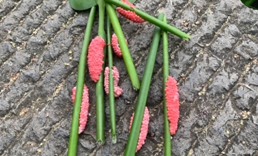 記者了解到,這種粉紅色的"水草花"其實是福壽螺的卵塊,福壽螺喜歡生活在避光、水草豐盛、水質較好的淺水區域,眼下,南京玄武湖景區在太平門木棧道、十里長堤等區域,都發現了福壽螺卵。