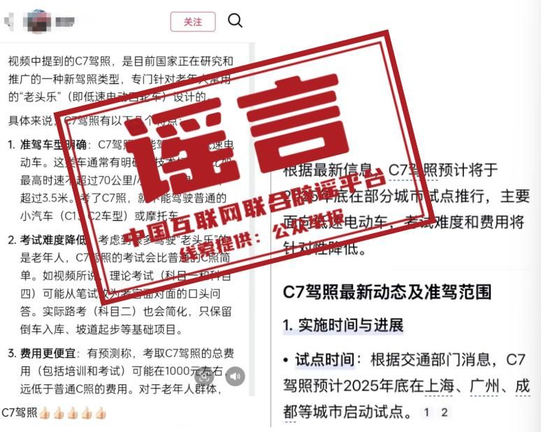 上海等地試點“老頭樂”C7駕照?——今日辟謠(2025年11月24日)