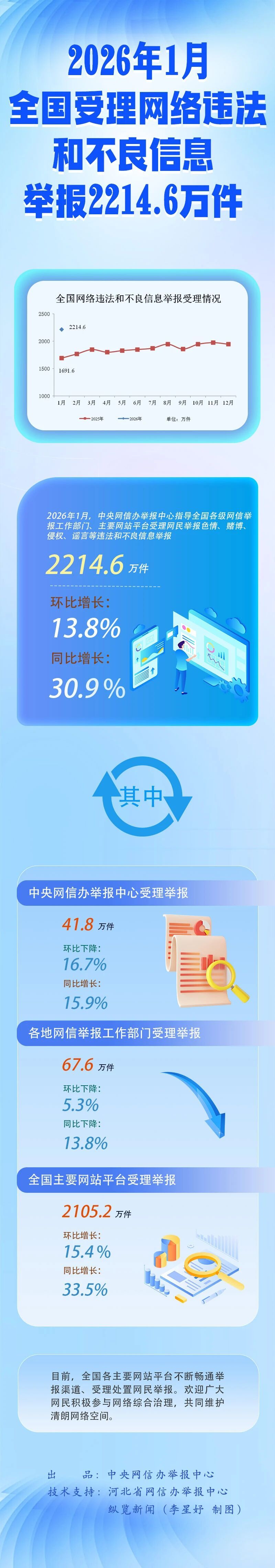 權威發布 | 1月全國網絡舉報2214.6萬件