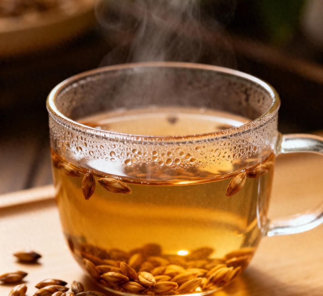 大麥茶:可以在商超購買成品,也可自制。把去皮的大麥仁在小火上慢慢炒,待到米香四溢,顏色焦黃即可。然后取炒過的大麥,用水煮沸或者用沸水沖泡即可。
